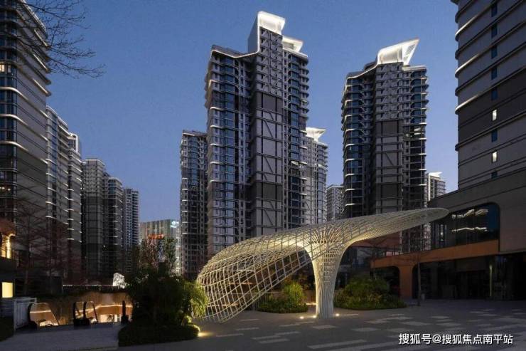 天琴构架作为项目的精神地标,灵感源自“天琴”,柔美曲线遵循美学逻辑,每一条线条、每一处造型都尽显精致。