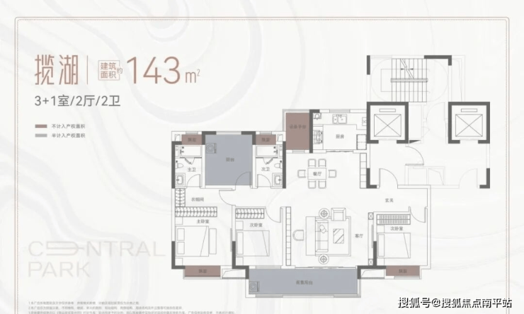 🏠约143㎡ 四房两厅两卫独梯入户,私属归家体验。南北双阳台通透格局,品味明亮肆意人生。主卧套房设计,尊贵感与私密感尽显。四面宽朝南,约 6.65m 超长景观阳台,享全生态园景艺术视野。