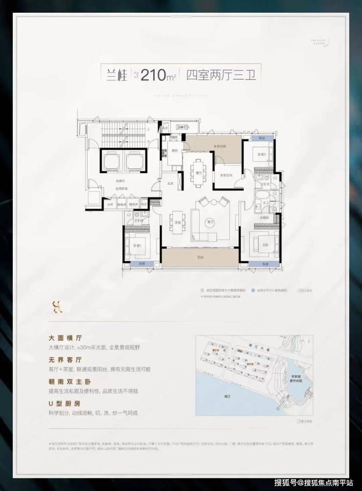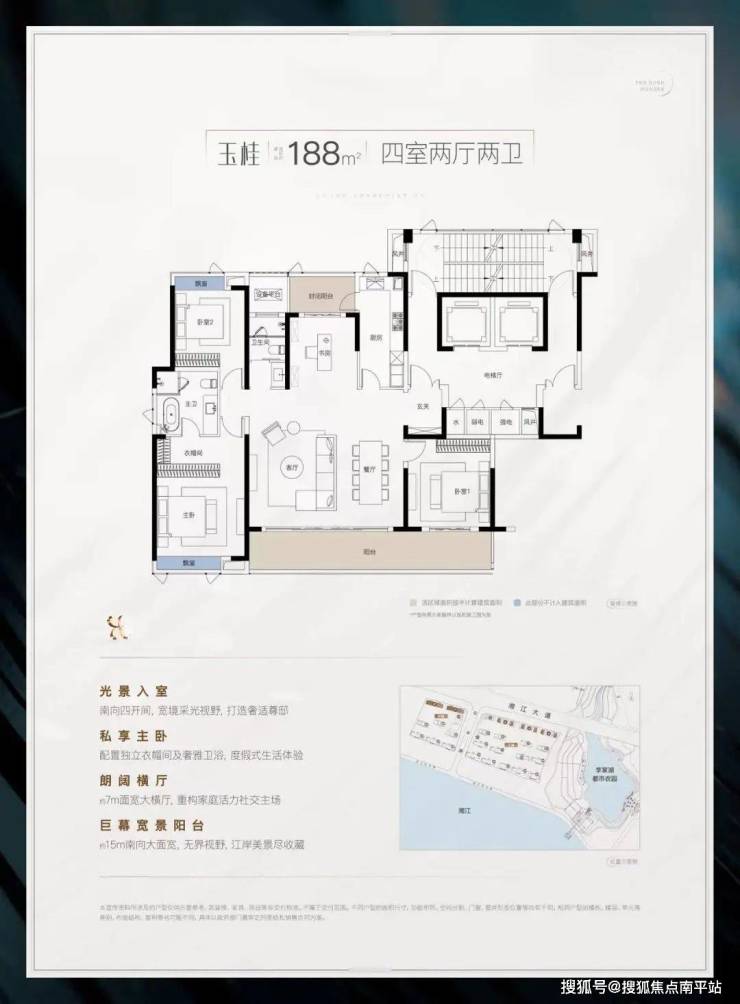 3、143-280㎡瞰江高层:两梯两户纯板楼,独梯入户,尊享私家秘境,礼遇进阶生活;
