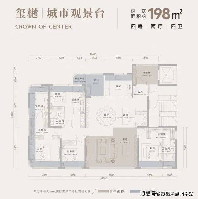 198㎡4+1三套房设计:3.3米层高,约7米横厅,270°环幕全景舱套房,得房率约113%;