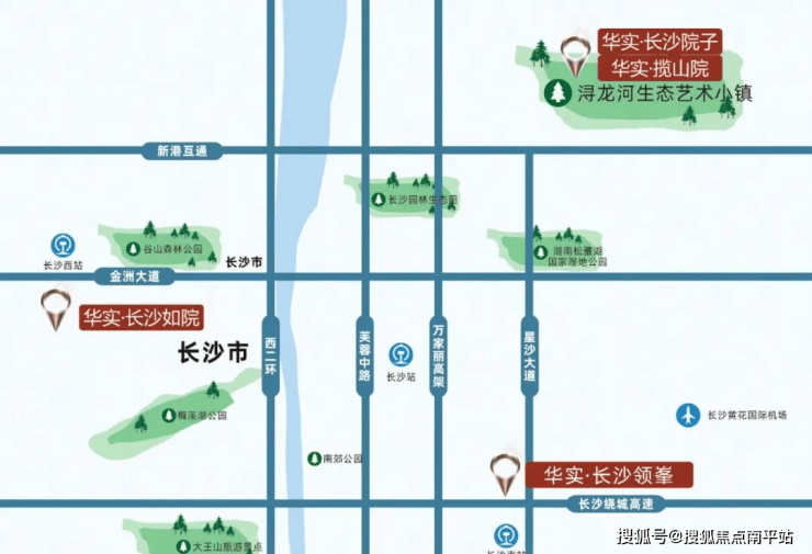 项目扼守城市东西交通主干道——岳麓区金洲大道(桐梓坡路西沿线),接市府、承高铁西,连梅溪湖副中心。距地铁2号线西延线二期金洲大道站(在建中,预计于2025年试运行)约650米。“三横三纵”主干道路网,长宁快线、长浏快线城轨等多维立体交通接驳全城。