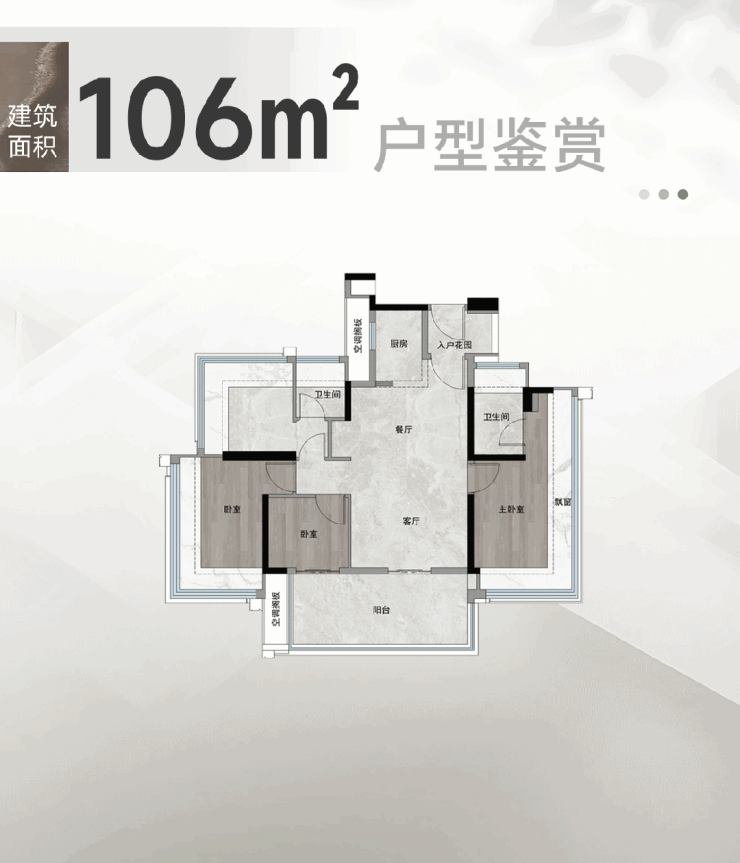 建面约106平做到四空间双卫,更媲美传统 135-145平户型舒适度! 客餐厅做了墙体拉平的设计,配合超大的采光面,实现IMAX级的采光与观景视野!