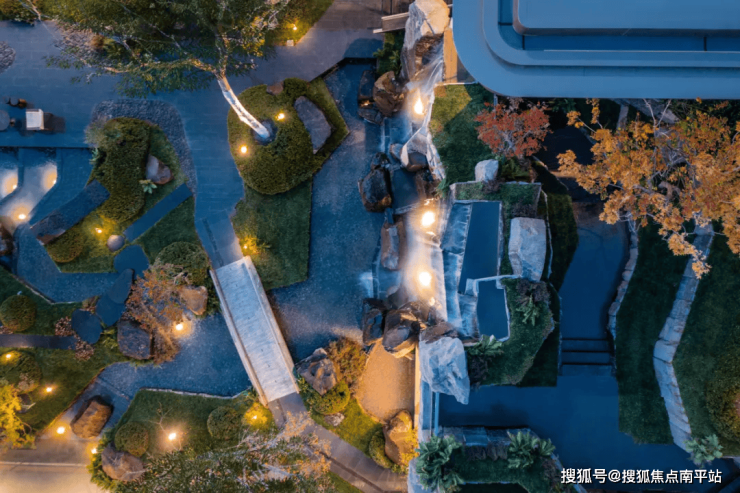 绿城·桂语安澜的花园哲学,是让自然基因渗透至每一处空间肌理。自下而上,下沉式庭院以私密围合演绎入户礼序,山水庭院以水墨笔法勾勒诗境,空中浮岛将开敞阳台与私家花园完美融合,露台则以第二客厅的姿态,承载星空下的家庭剧场。 当传统社区因容积率限制而压缩景观纵深时,绿城却以“下沉庭院+地面园境+空中浮岛+屋顶露台”构建多维生态,让花园缦境从平面走向立体,从单一走向复合,形成垂直维度的景观叙事。