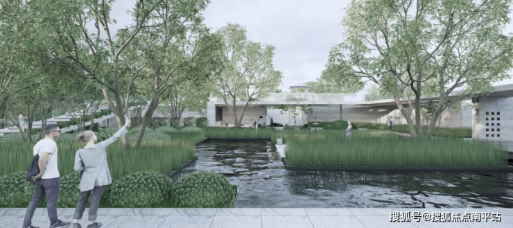 项目景观整体呈现自然开放、去围墙化的设计,将园区通过自然手法与城市形成若有若无的界限,达到公共景观与项目景观的融合与区隔,将项目融于江岸绿化景观之中。项目秉持空间即艺术、艺术即空间的景观设计理念,以武汉江城文化与云梦大泽作为自然基底 ,并以当代美术馆美学作为空间载体, 摒弃过分装饰化的设计手法进行景观打造,植物围绕“谧境”主题进行选型, 儿童活动区域与森系园林充分融合,以再现地域特色、再现生命特征、与饱满纯净平衡的美术馆美学为原则, 匠造“一殿一境三院落”立体森境,各区域呼应都会艺廊、云梦之屿、圣殿花园、云梦翠谷、云梦之汀等景观主题。