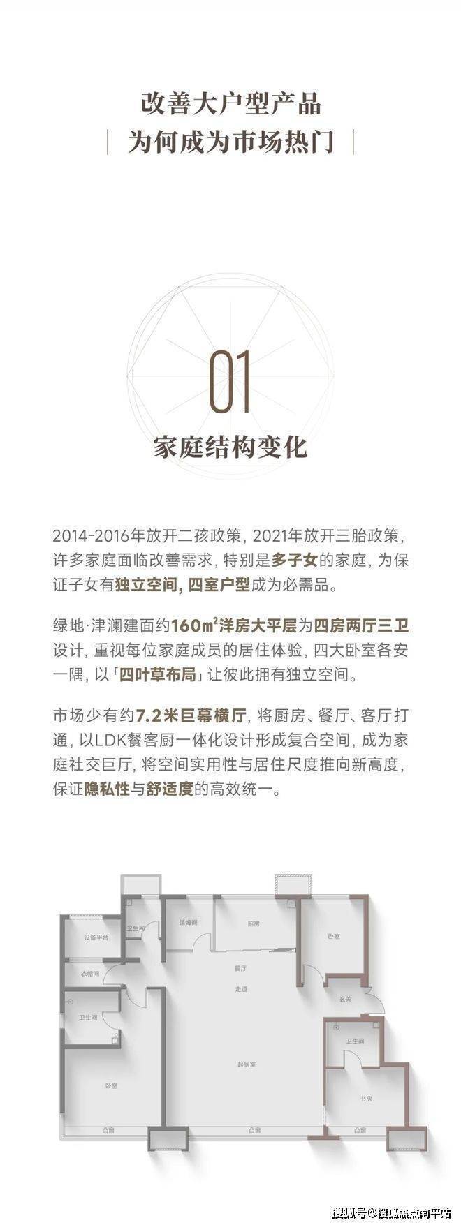 绿地·津澜建面约160m'洋房大平层,是家族精神的场景容器,以超前的设计、人性化的精妆、洞悉生活的细节,托举三代人的多维度对话,让空间成为家庭生活延展的交互界面。