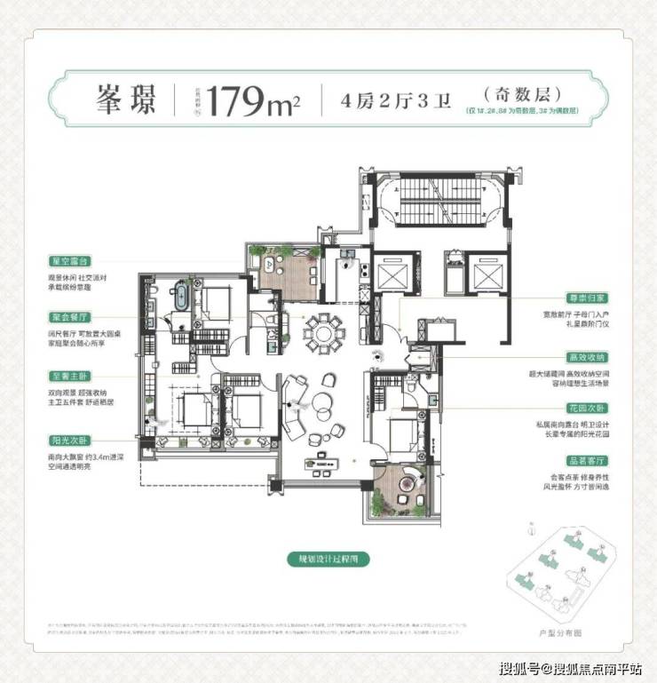 项目规划7栋住宅,打造建面约163-218㎡宋韵顶奢四代宅,将建筑艺术与自然美学相融,集私家庭院与宽幕视野等优点矜贵迭代,赋新泉州理想人居。
