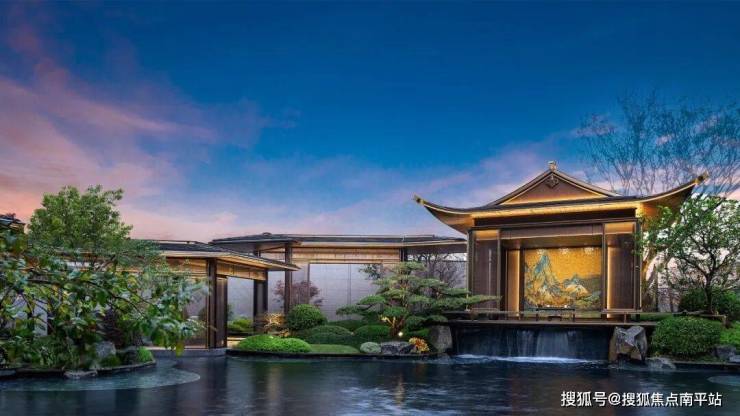 建发房产风雅宋韵产品,特点是“清新儒雅、精致飘逸”在宋代文化和建筑特征的基础上,以“轻、闲、霁、金”的匠造手法,真实复刻宋代文人雅士的风雅生活,呈现千里江山图的壮观场景。