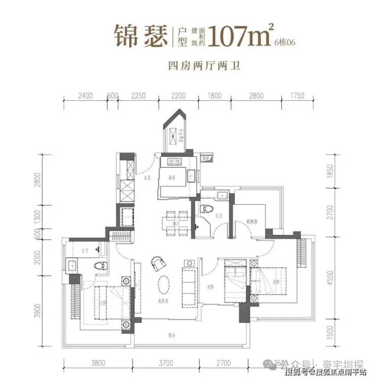 建面约106㎡宽幕人生,以IMAX光幕揽景,以LDKB方厅聚情,更以转角视野与匠心细节,奢享从容生活。• 锦瑟·建面约107㎡4房2厅2卫:双龙抱珠,一线园景,奢阔雅居