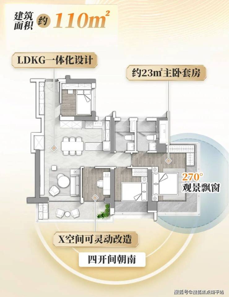 社交阔厅|半开放式中西厨,LDKG一体化布局从容有序
