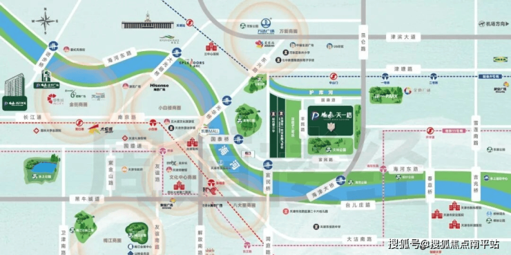 3️⃣三轨:直线距离约1.2km可达1号线陈塘庄站、9号线中山门站,11号线海河东路站,三地铁轨道交通,高效出行,优速畅达;