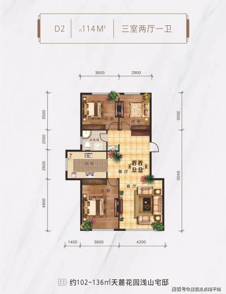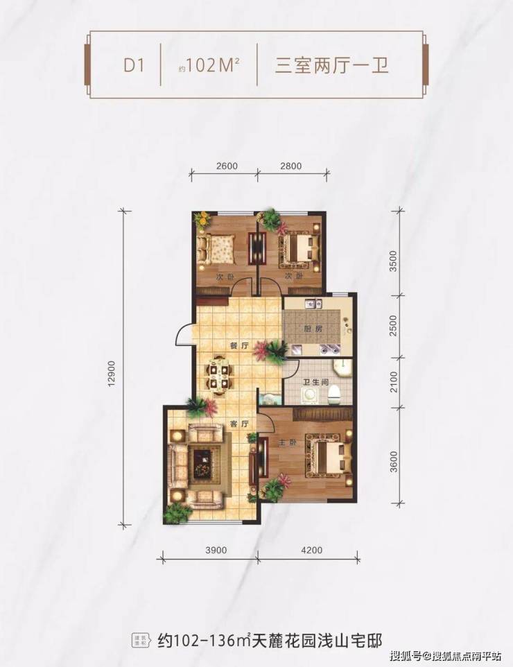 ,推出102㎡、115㎡、136㎡三种户型,都是三室两厅。