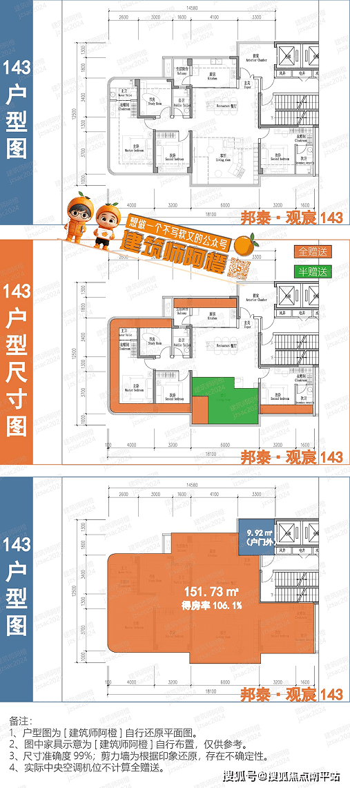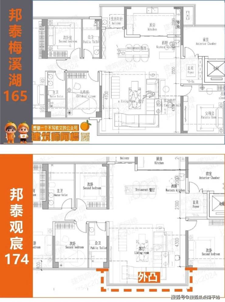 这个户型,阿橙认为在邦泰璟和(梅溪湖地块)的165的基础上,改进了不少小毛病。