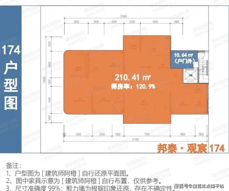 其实复原户型的过程中,阿橙一度怀疑自己算错了。在确定计算无误之后,想在文章开头来聊聊这个事情。(放到后面怕你不看)