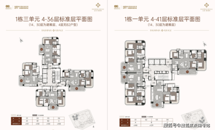 户型对比前一期紫荆府的差异就是没有追求一梯一户的布局,电梯厅采用传统布局,但是保留了每户入户前的独立公共空间。这样的好处就是增加了得房率又兼顾了私密性。