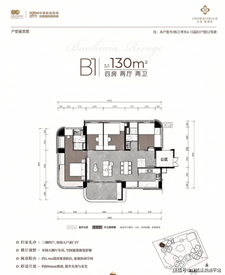 结合前海片区的定位和市场需求,预计将以改善型新规大户型为主,瞄准对前海发展潜力看好的改善型客群和资产配置者。4月9日实体样板房开放。