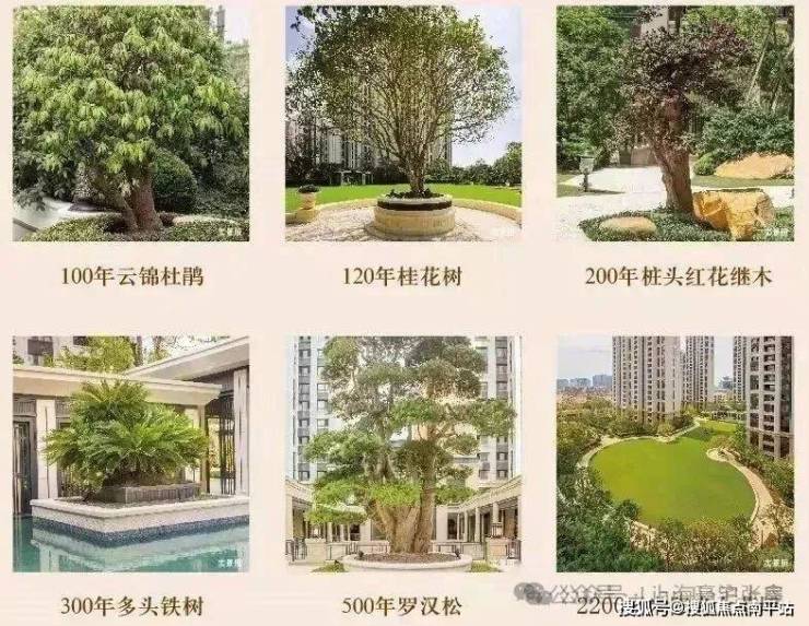 整个小区有数十种植物臻稀树种,全部采用全冠移植,均在宝华园林适应培育2年以上再移植至此,对树木的高度、胸径、冠幅等都有严格要求,保证全年都有鲜花绽放。