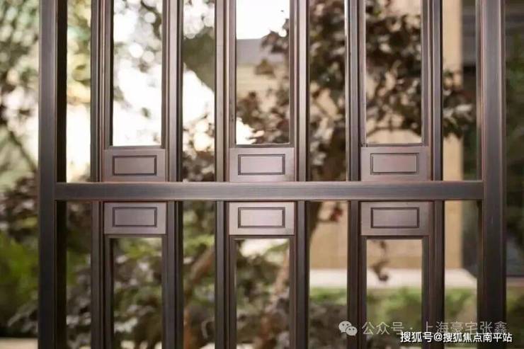 社区内所有涉及到金属材质的地方,都选用了紫铜。雕花窗栅、紫铜大门、复古吊灯、甚至从风雨连廊的护栏,到生活小品座椅、灯罩、水池中的天鹅雕塑,全都采用紫铜材质,厚重而充满质感,品质从一而终。