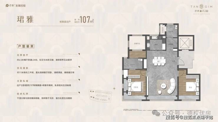 户型面积:107㎡隐奢小高层、110-169㎡三居/四居洋房