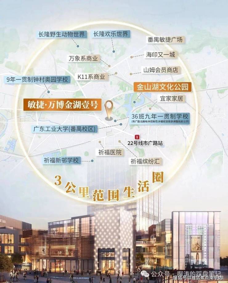 敏捷地产,作为番禺的先驱者,深耕番禺,不仅打造出万博商业门户——番禺敏捷广场,还给番禺贡献24座理想人居作品。2025年,敏捷地产从总部地块出发,在金山湖畔,为万博CBD筑写湖居壹号作品。