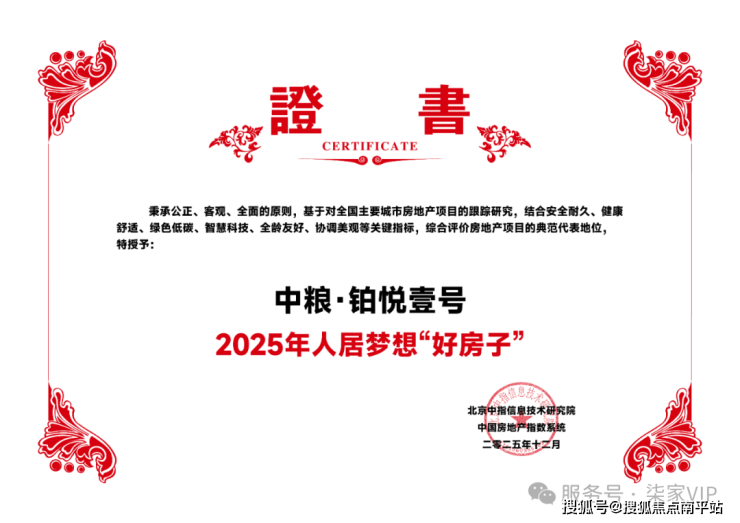 近期,由北京中指信息技术研究院主办,中国房地产指数系统和中国物业服务指数系统承办的“2025中国房地产大数据年会暨2026中国房地产市场趋势报告会”在北京召开。中粮·铂悦壹号凭借优异表现,荣获了“2025年人居梦想“好房子””荣誉。