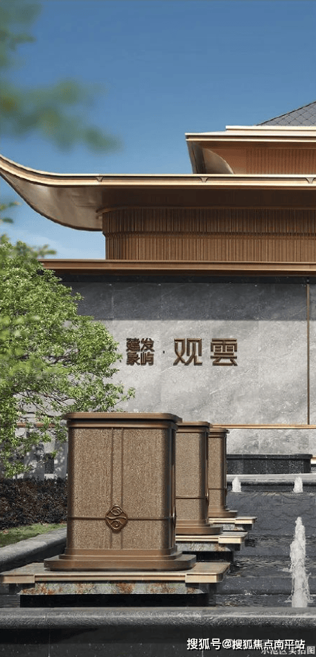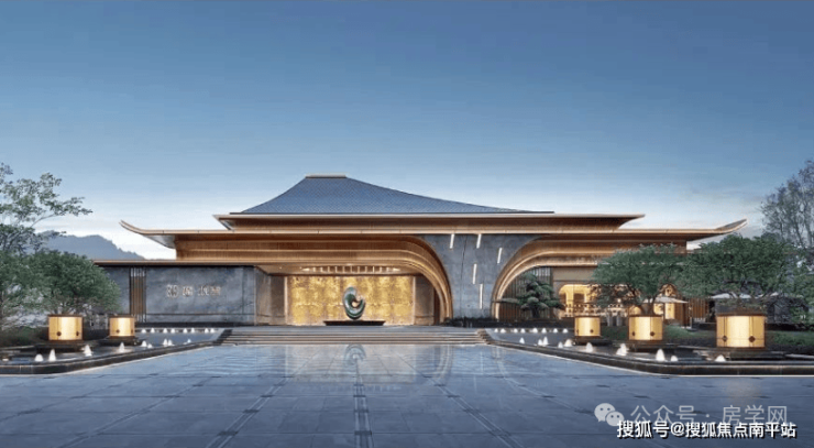 东方威仪门庭,人字坡屋顶建筑美学,中式花纹承韵凝练奢雅的诗意东方,彰显大家风仪。约65米宽、14米高气派大门,山海主题雕塑、天花藻井、迎客罗汉松、镜面水景。每一寸空间,皆是品质与意境的双重苛求,气势磅礴,藏风聚气。