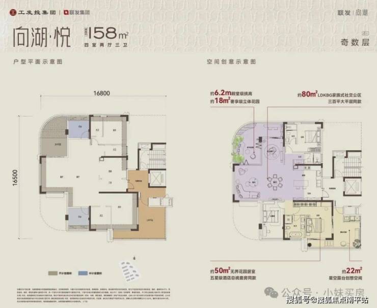 更令人惊叹的是,联发向湖的高层产品“户户配备3个院子”:6.2米高空中花园+南北向宽景阳台+景观露台。