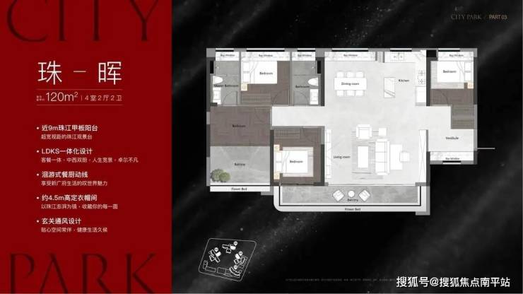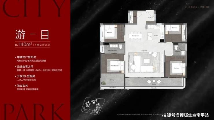 该栋为25层高,两梯三户设计,只有两个面积段,120㎡和140㎡,户型做得不错,在景观展现上用了功,极大程度去放大观江面,比方说超宽阳台、L型主卧转角飘窗、客厅预留观景飘窗等等,主打改善户型,2025年9月整体交房。