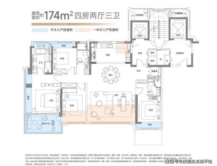■约174平米的户型,以四房两厅两卫的格局,致力于为多代家庭提供一种尺度宽绰、功能完备的居住解决方案。