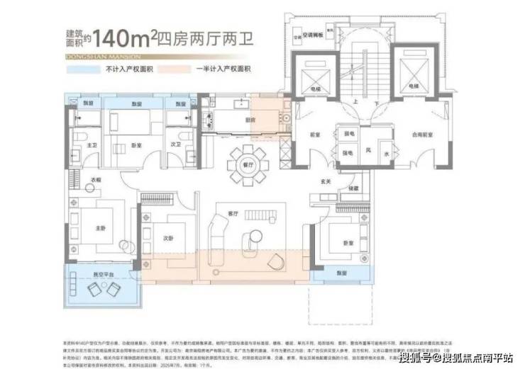 ■140㎡四房两厅两卫户型,两梯两户(相当于一梯一户)+独立门厅的设计,既释放出更多空间,也很好地保护了居家隐私。独立玄关、家政间、储藏间、露台、阳台多样化功能空间设计,不仅丰盛了生活,同时拓宽了空间使用率。