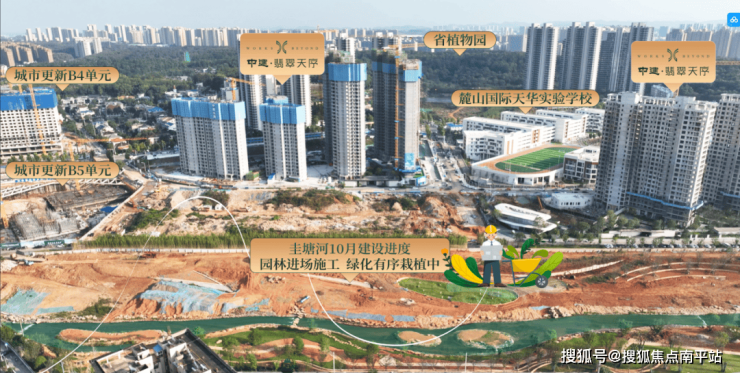 中建・翡翠天序山河序便坐落于这山水之间:东侧省植物园呈“C”型环绕地块,圭塘河流经时亦成“C” 型河湾,形成 “山环水抱,玉带缠腰” 的天然格局,恰应古书中 “门前若有玉带水,高官必定容易起;出入代代读书声,荣显富贵耀门庭”的风水意境”。