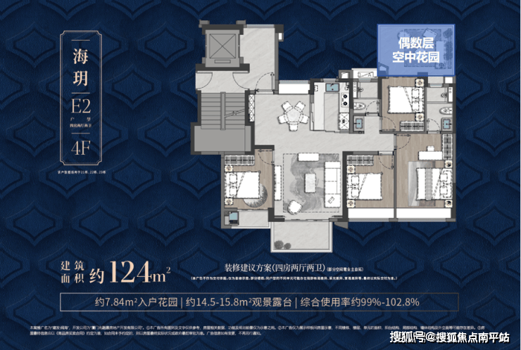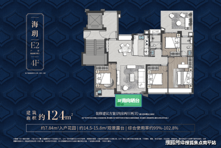 124㎡第四代住宅洋房,得房率约100%-103%,堪比市场上160㎡住宅;