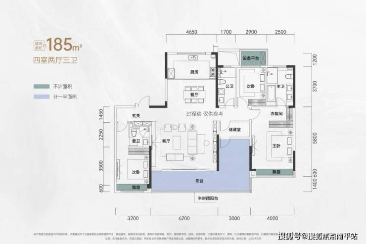 先来看 约185㎡的户型,4房3卫双套卧设计,独立电梯厅+独立玄关。