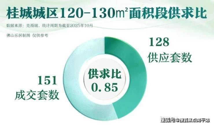 克而瑞数据显示,今年1-10月,桂城城区120-130㎡面积段 供求比低至0.85,呈现出供不应求的局面。