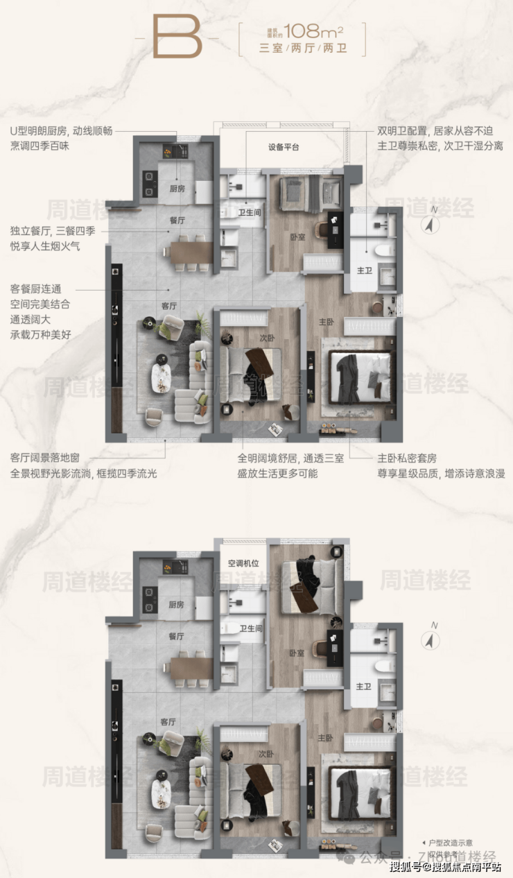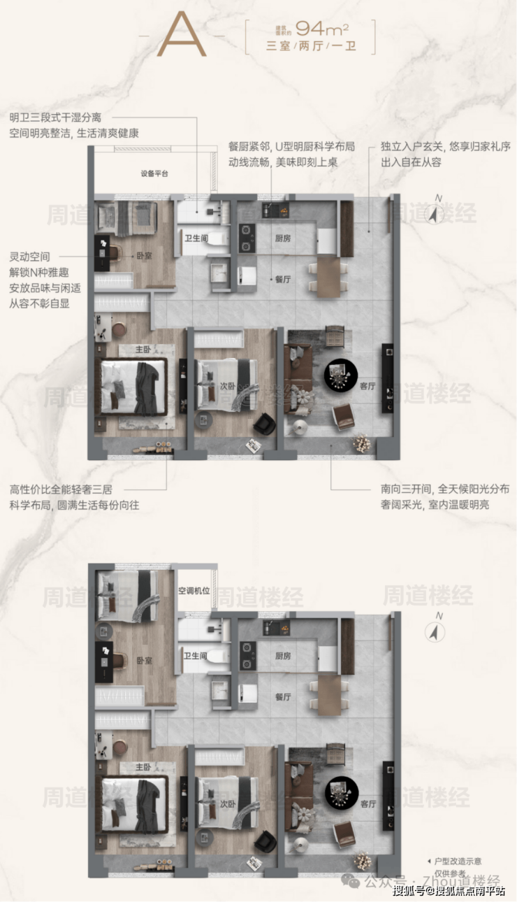 5️⃣户型全明南北通透,符合刚需/改善居住需求,94-108㎡,户内设置拓展空间,使用率更高