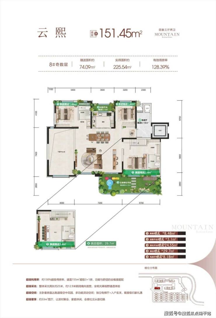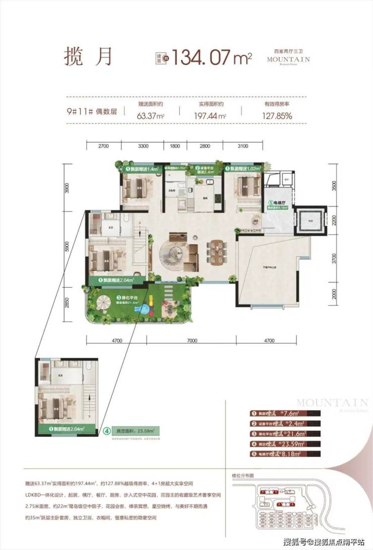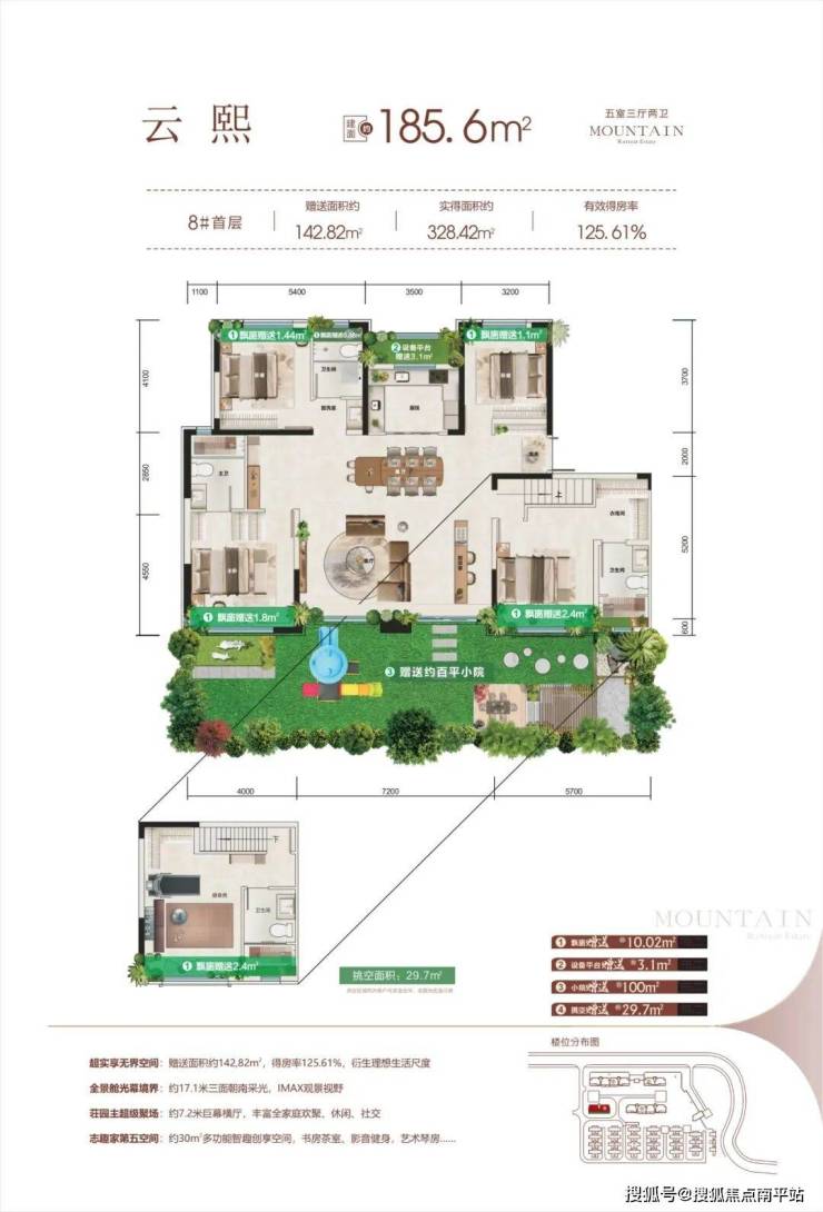 「第五代全景环幕舱体设计+270°空中森屿庭院+搭配南北向悬浮式露台」