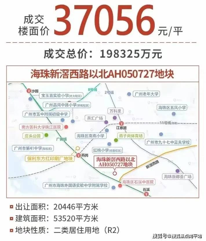 海珠新滘西路以北地块,2023年12月被中建信和(中建五局)以19.8亿总价拿下,折合楼面价约3.7万/平
