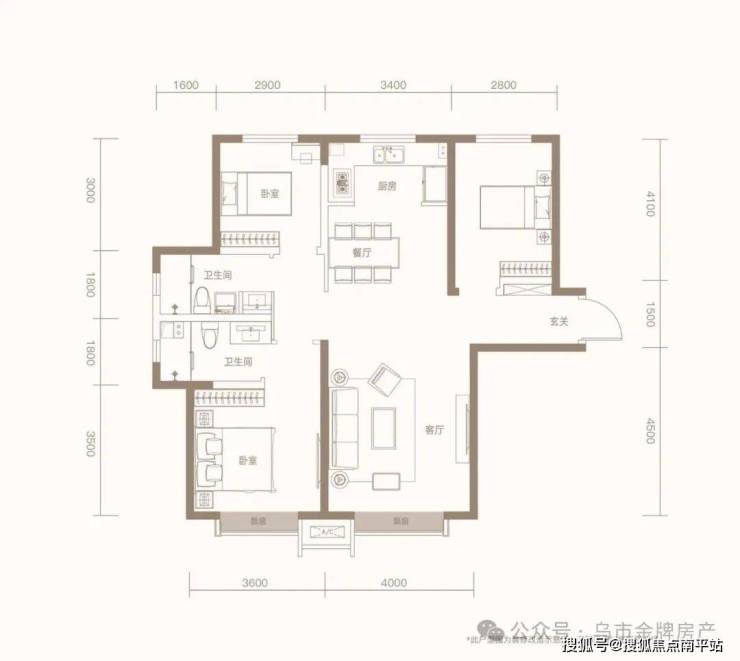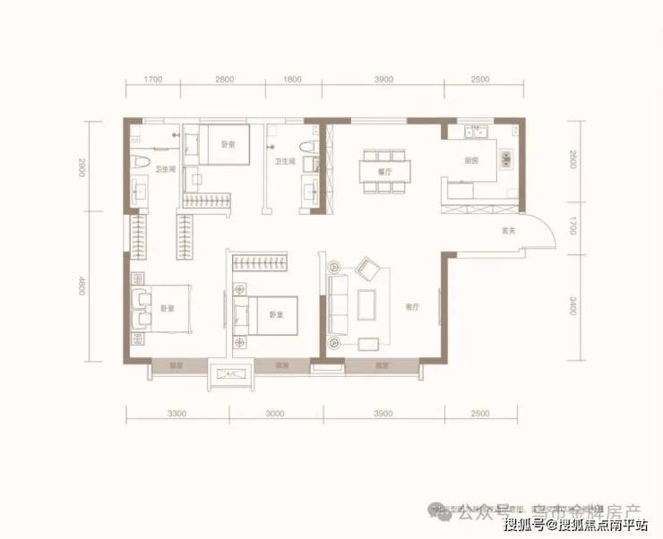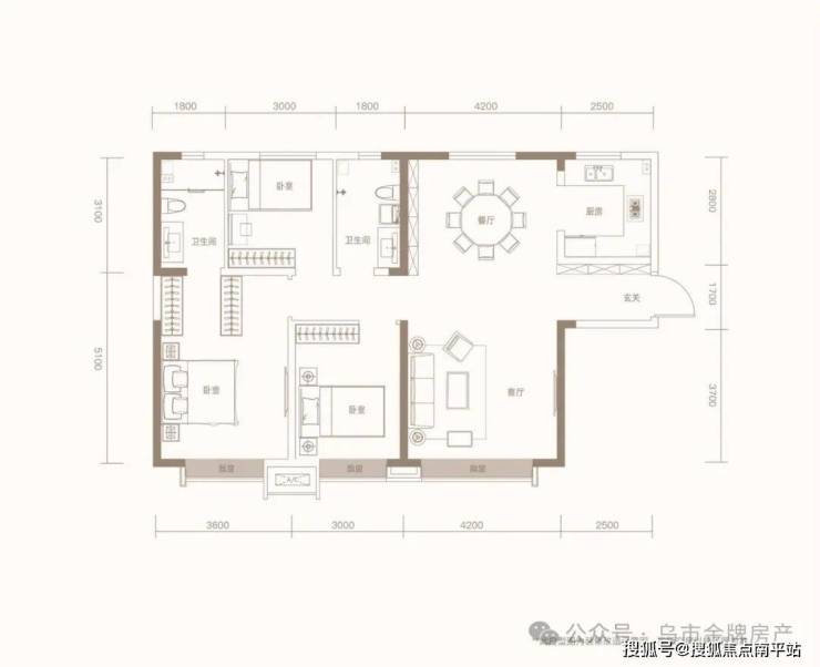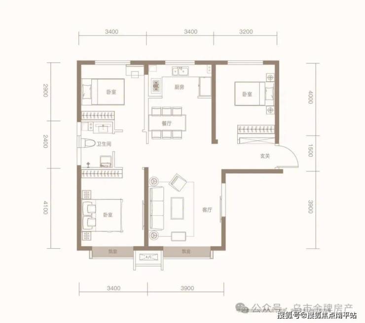 1、户型特点为格局方正,南北通透,带独立玄关;