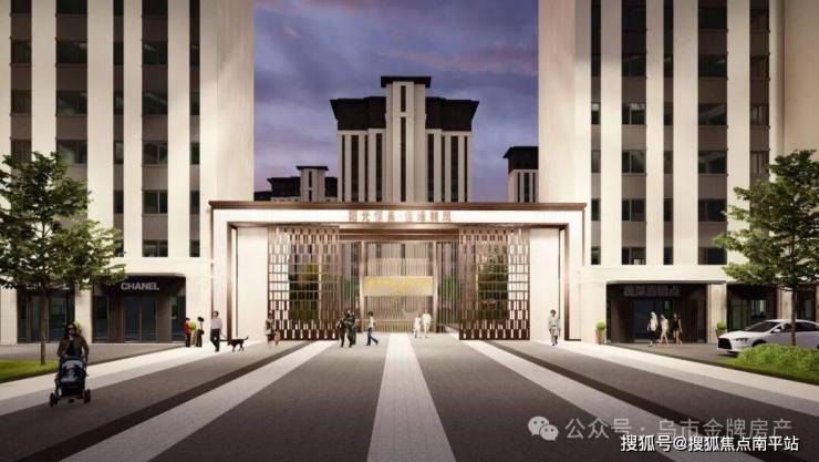 园区主大门位于舟山街,宽21米,高8米,搭配格栅景墙,为业主和来访客人营造庄严气派的归家仪式。通过两个人行通道进入小区,第一眼均可体验到开阔的礼仪广场和景观轴线。人行通道两侧用不同高度的草坪、灌木、林木等打造的递进式景观,拥有更多的、更丰富的园林层次,满眼皆是绿色,步步都是美景。