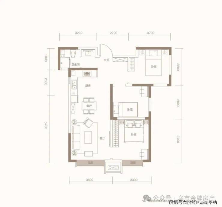 3、南向客厅、主卧均赠送60公分景观飘窗;