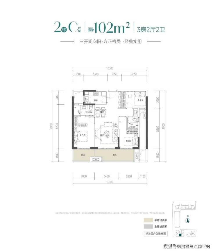 建面约102平方米户型