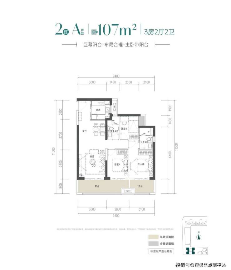 建面约107平方米户型