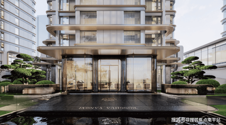承袭王府鼎级规制,同频国际当代审美;大面积中空LOW-E玻璃幕墙,辅以金属铝板勾勒,环幕弧面公建化立面,屹立中心的地标封面,献给世界的传承资产。