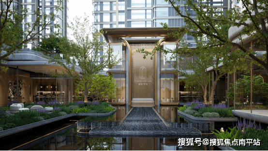 回家的路,亦是回归内心的序曲。归家仪式感, 始于超百米奢郦门庭,以“央”字为型, 西班牙珊瑚红奢石铺就主体, 非洲蓝金刚石勾勒轮廓,静水映天,聚气纳瑞。