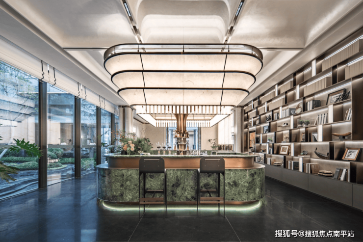 天津招商揽阅汲取东方礼序,融入奢华酒店的设计美学,将传统与现代相融,打造翼展约53米的奢阔酒店式门庭,景墙甄选星耀灰石材、蓝宝石岩板,白冰玉宫灯与香槟色金属铝板交相辉映,刻画沉稳的优雅底蕴,停驻于前,仿佛置身艺术殿堂。步入大厅,石材拼花的地面,典雅气派缔造隽永的美学意境。