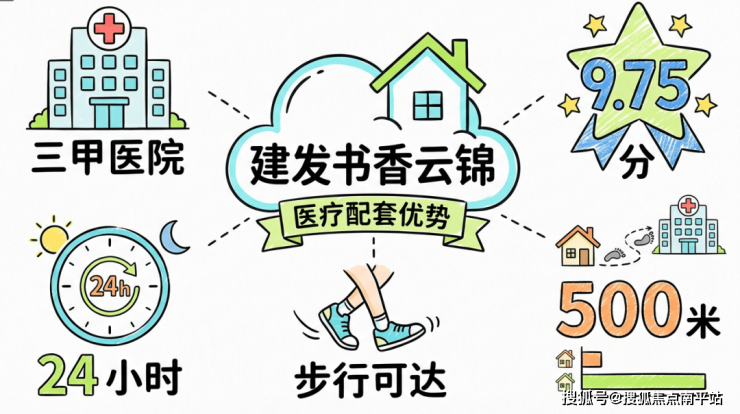 医疗配套是刚需家庭置业的核心考量,建发书香云锦能以9.75分登顶榜首,核心在于其便捷的优质医疗资源。项目 直线距离三甲厦门长庚医院仅约 500 米,步行即达 。