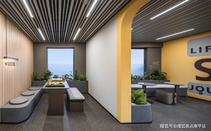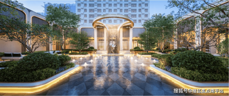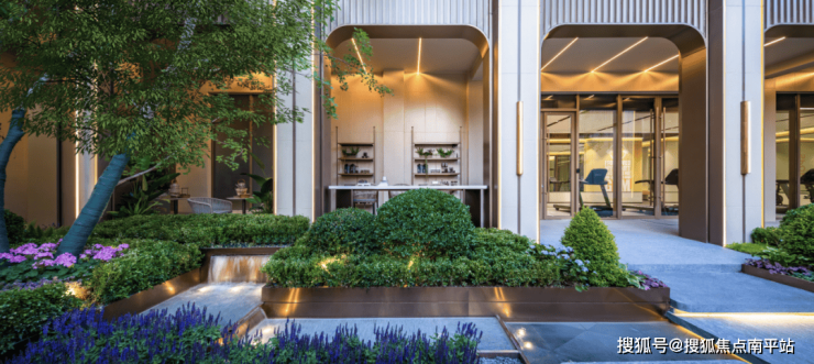阳光下沉庭院:绿植休憩平台,喷泉水景,邻里茶叙。