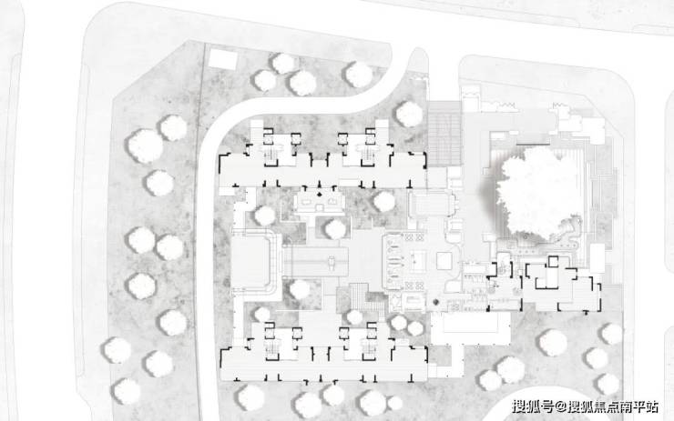 示范区以“回型动线”展开叙事:外圈是连贯的展示与归家路径,内圈则围合出层层退台的庭院。塔楼底部的架空空间也被纳入这一系统,让人可以在不同高度间穿行、驻足、回望。行走其中,建筑、庭院与景观渐渐融为一个可漫步、可回游的生活场景。