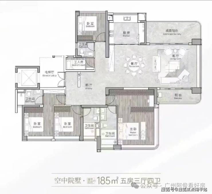 188㎡五房四卫:南北双阳台+三面采光+工人房灵活改造,北向高层可瞰湖景。