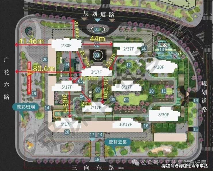 西侧紧邻广花公路,低楼层或受噪音影响;东/南侧开发地块存在不确定性。
