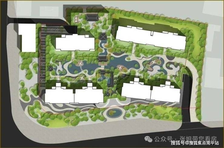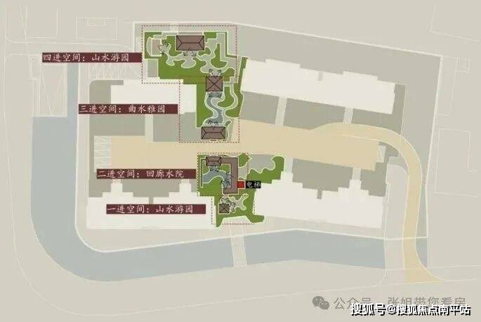 懂行的都知道,园林景观中水景的成本是非常高的,为了控制成本,很多楼盘都只是以小面积水景加以点缀。 而这个项目却设计了四进空间,每一进空间都有水系。